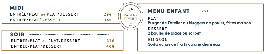 Les menus et tarifs du salon privatif sont identiques à ceux du restaurant.