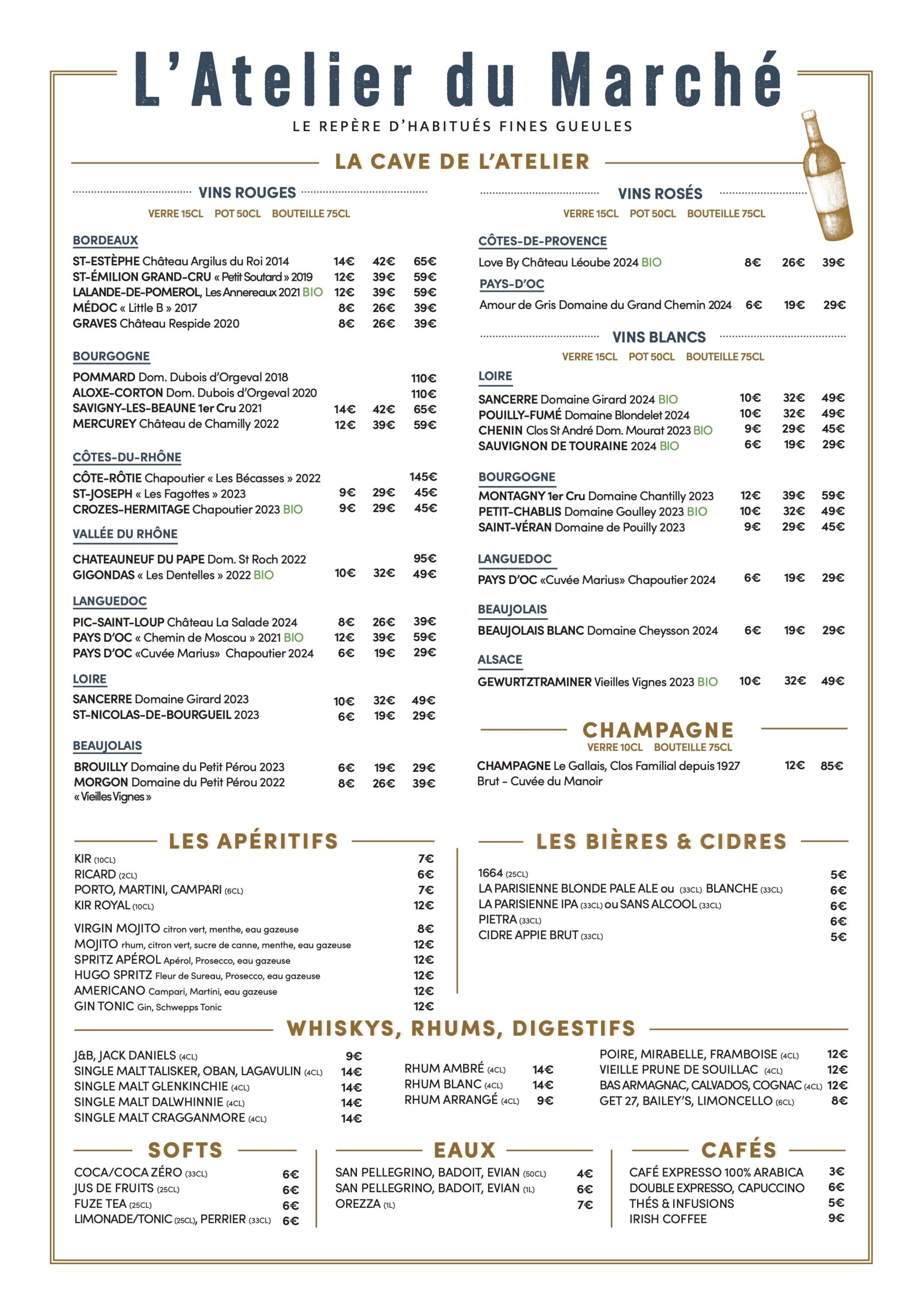 Une cuisine française traditionnelle à deux pas du marché des Ternes, l’Atelier du Marché vous accueille dans un cadre authentique et intimiste, dans une ambiance bistrot Parisien.